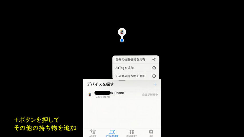 次にトラッカーを探すのタブからプラスボタンを押して「その他持ち物を追加」を押します
