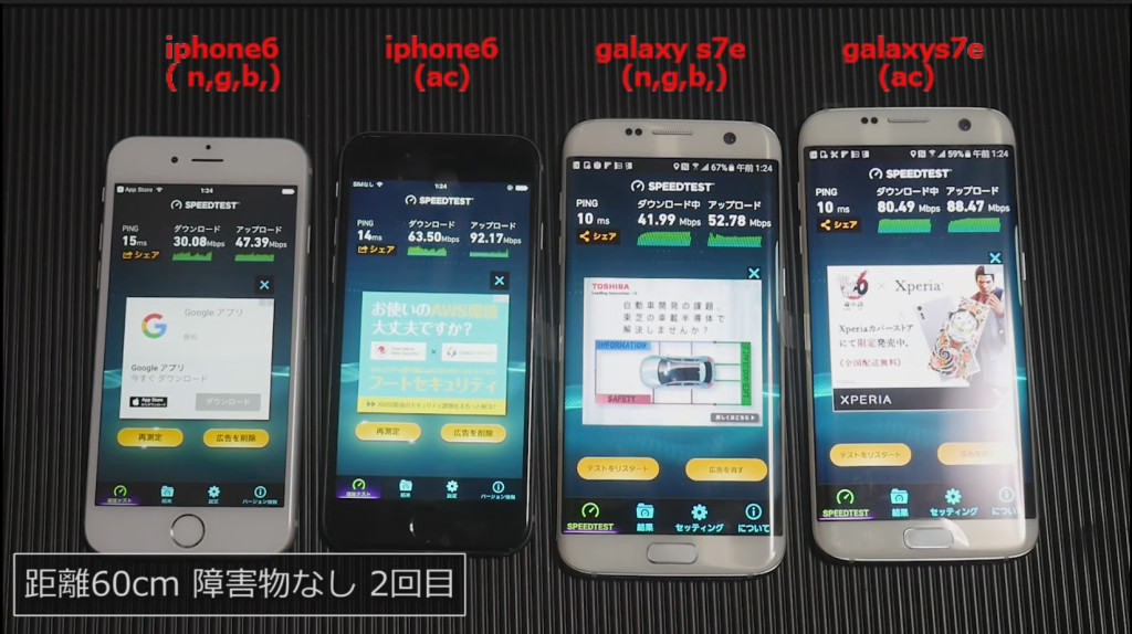 動画の最後でgalaxy s3でテストしていますがacはギリギリ繋がるというレベルでやはり古い端末はngbの方が安定しているのかなという感想です(検証した端末が少ないですが)