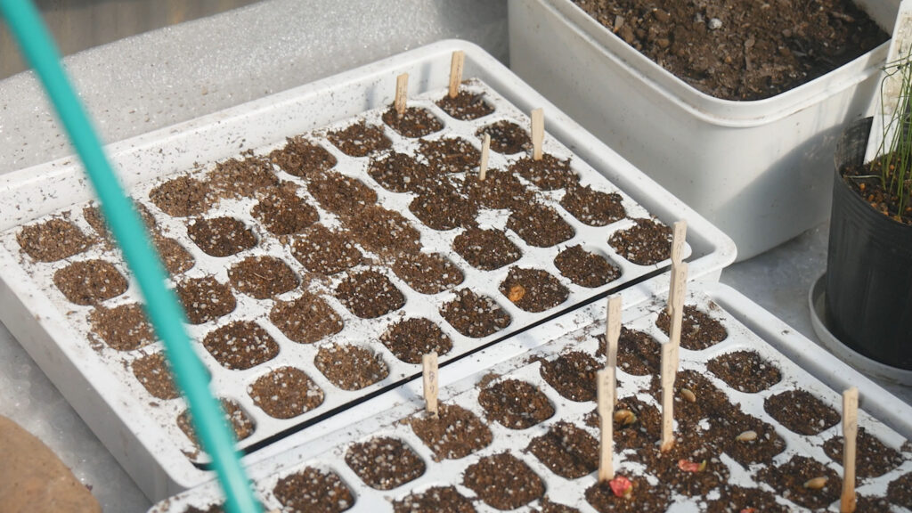実際に使う場合はニッパーなどで下側をカットするといいです、長いと育苗している野菜が日陰になってしまったりフォークの所に根が巻き付きます。