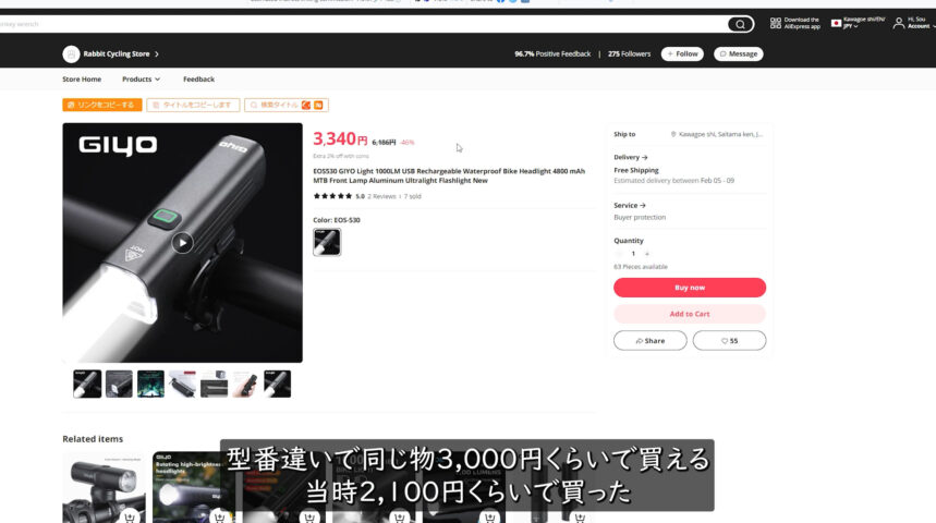 ライトはこのライトです、別の会社から別の型番で販売されていますが同じもので大体3,000円程度で購入できます、私が買った時は2,000円程度でした、StVZOでハイビームも有っていいライトです。