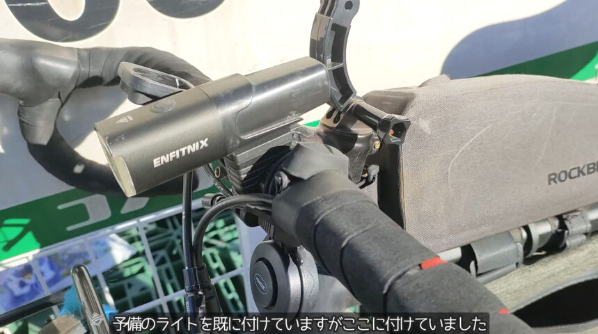 この頃悪い事が続いているんですが自転車のライトを盗まれました、下の写真は予備のライトを付けていますがここに付けていました。