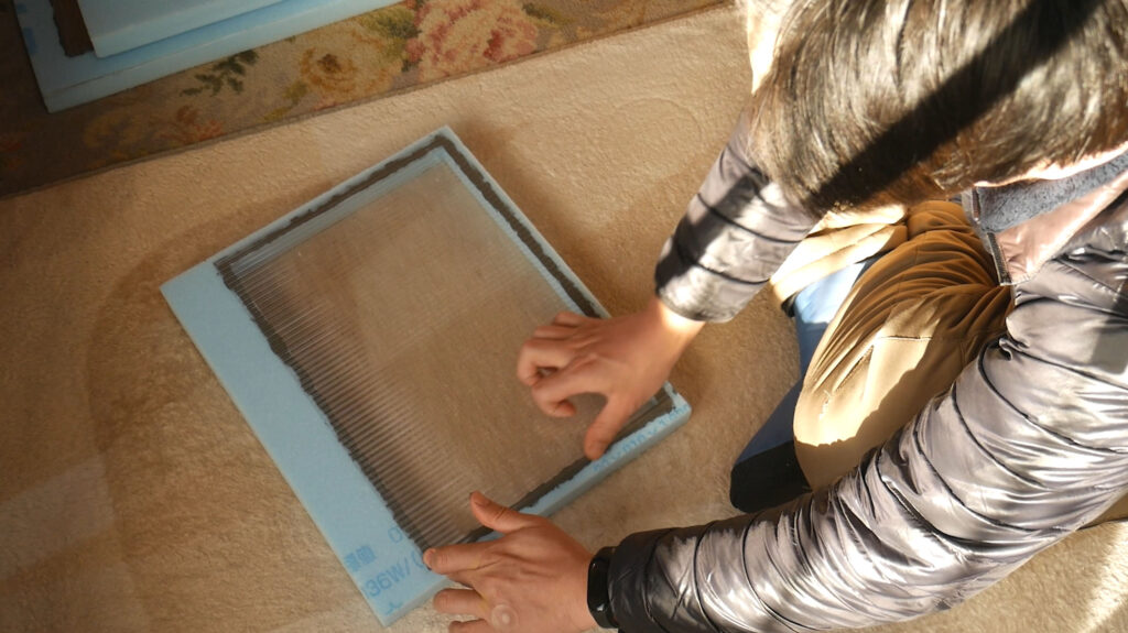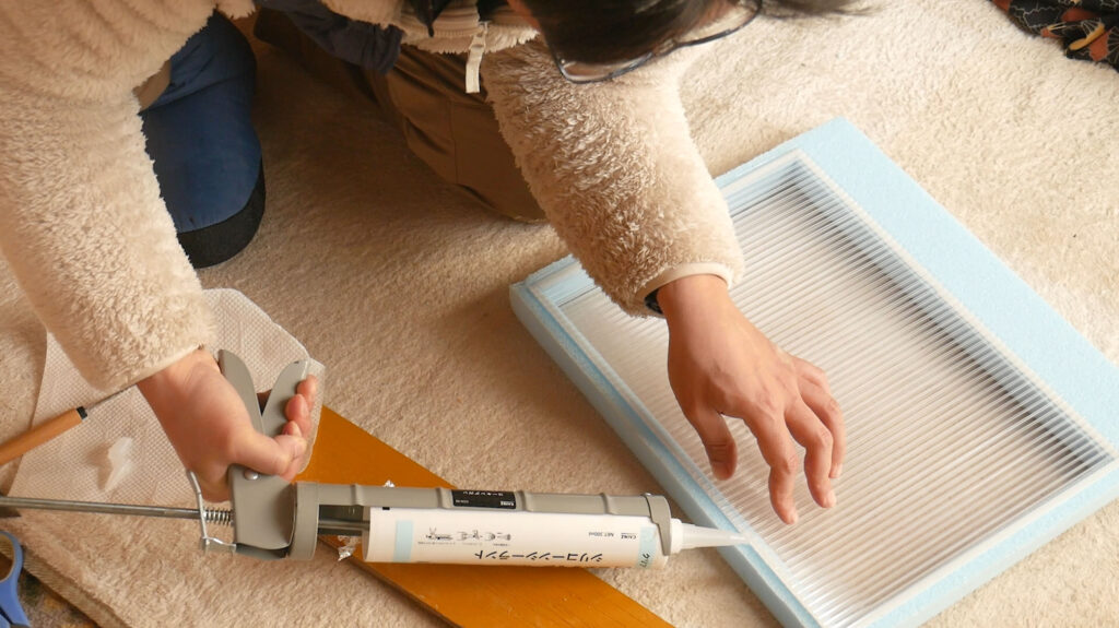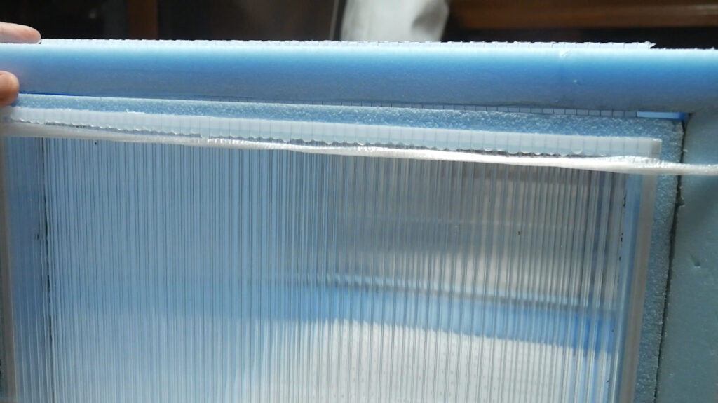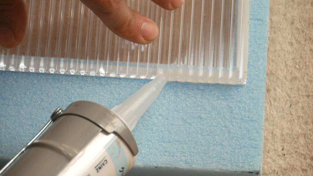 ポリカの端にシリコンを注入して密閉し空気の層を作る