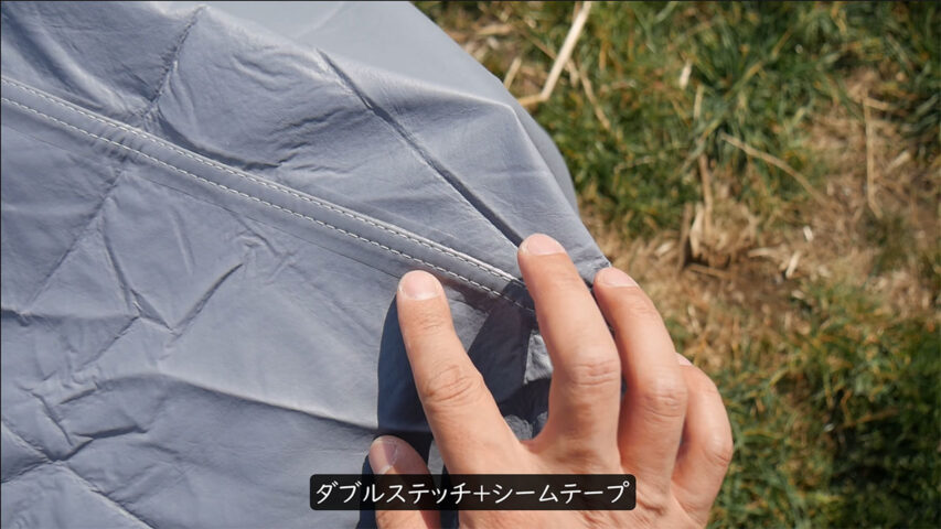 継ぎ目はダブルステッチで裏側にシームテープなので水は簡単には入ってきません