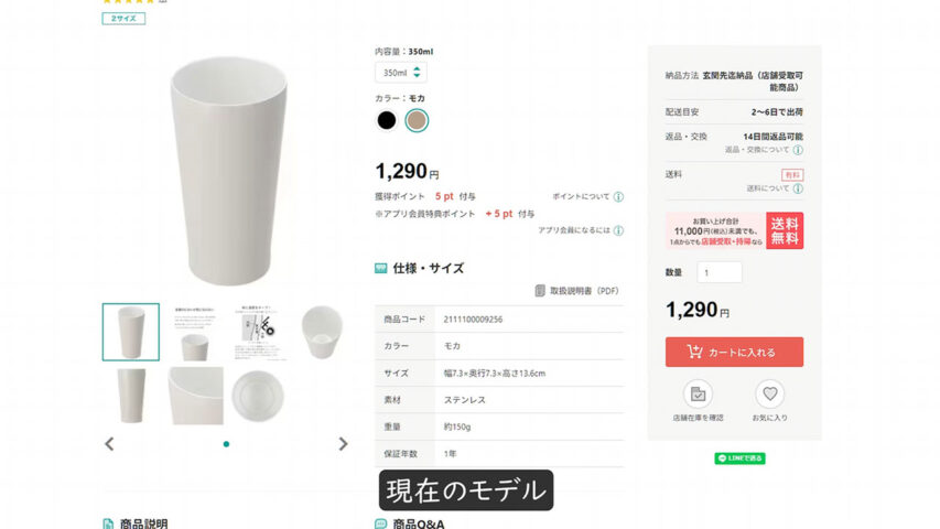 ニトリにはセラミックコートのステンレスタンブラーが豊富に種類が有ってその中から高級感や肌触りから中も外もセラミックコートの物を選んで気に入って使っていました。