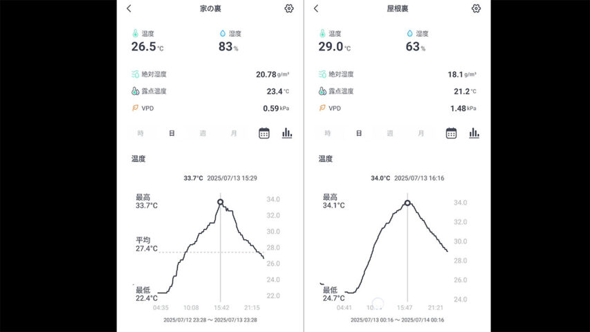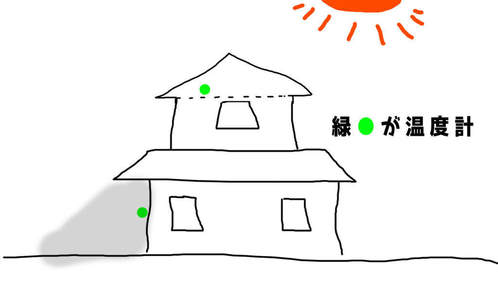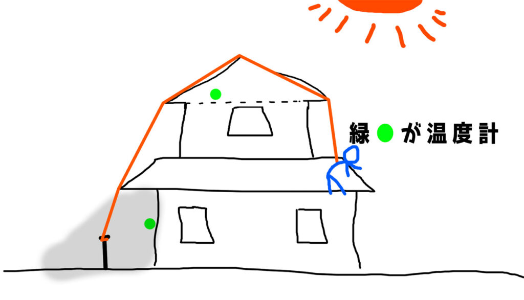 この時は偶々こうでしたが大体家の裏が予報通りの気温で、そこに数℃足したのが私の部屋でそこから更に5℃足したのが屋根裏という感じです。