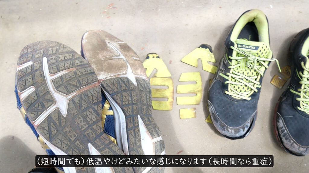 夏場のトタン屋根の上での作業は専用の靴が必要