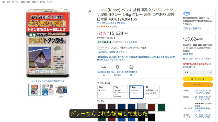 グレーでニッペの高耐久シリコントタン屋根用グレー も該当します、普通の人は真っ白や銀色は好まないでしょうから普通の人はこれがいいかもしれませんね。