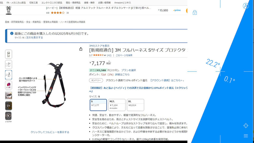 2回の屋根の勾配は20度でまず滑り落ちる事は有りませんが万が一を考えてフルハーネスとランヤードを使いました、元々は別の作業用の物で日本メーカーで両方揃えたかったのですが使用頻度を考えてこの組み合わせになりました。