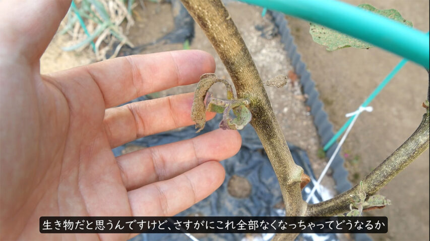樹勢が落ちている時期は、多くのナスの株がすでに病気や害虫(ダニなど)にやられている可能性が高いです。