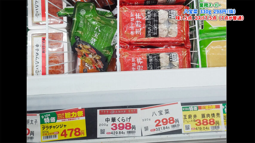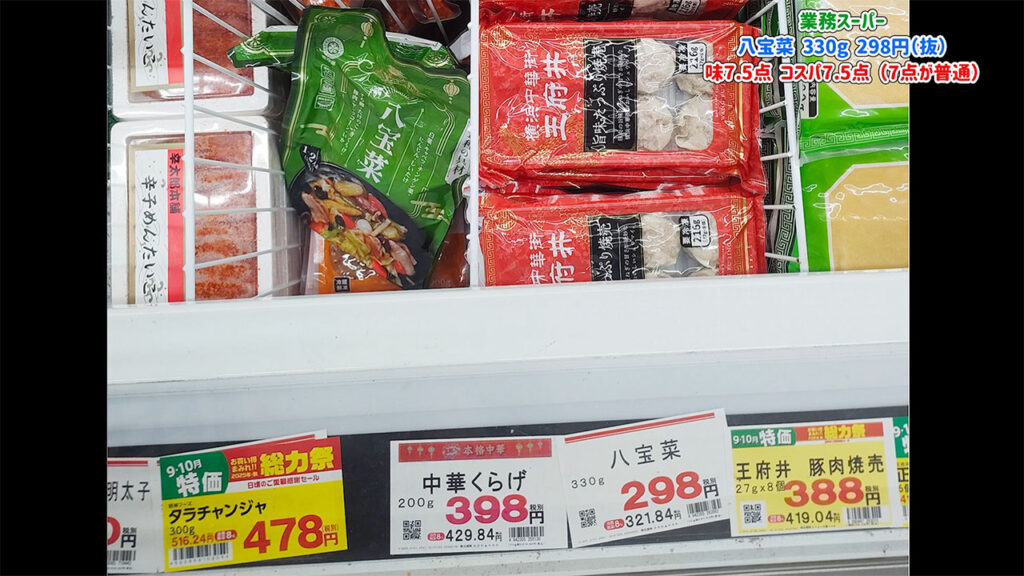昔の業務スーパーの価格帯を知っていると少し高く感じるかもしれませんが、今の時代にこのクオリティの八宝菜がいつでも298円で食べられるというのは、かなりコスパが良いと言えます。