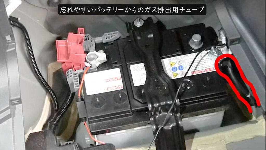 ガス排出用のチューブが接続されているのでこれを忘れず抜きましょう、結構忘れやすいです。