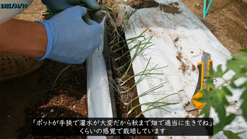 - スイカを7~8月に収穫したらそこに定植 スイカやメロンなどのウリ科は皆さん必ず作ると思いますがそれを7月、遅くとも8月に収穫しましたらそこの畝に長ネギを定植します。