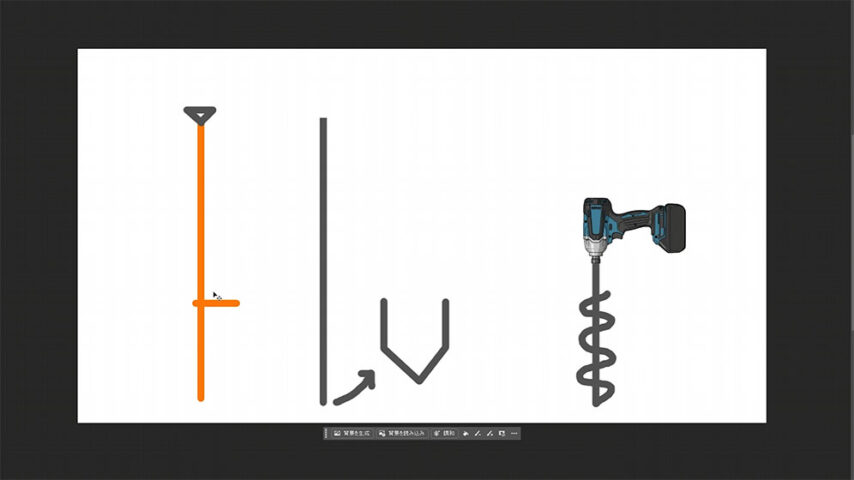 - 深さ30センチの穴を掘る道具 この栽培法の鍵は、直径2センチから3センチ、深さ30センチの垂直な穴を掘ることです。 足をかけられる木の棒や、鉄パイプの先端を加工した棒や、インパクトドライバーに装着するロングドリルなど、あらかじめ穴を開けるための道具を準備しましょう。