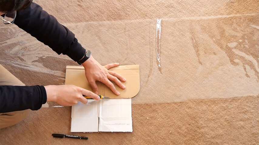 • ケーブル位置にスリット プリンタに接続する電源やUSBケーブルの位置をあらかじめマーキングしておいてそこにスリットを作ります、大雑把で構いません。