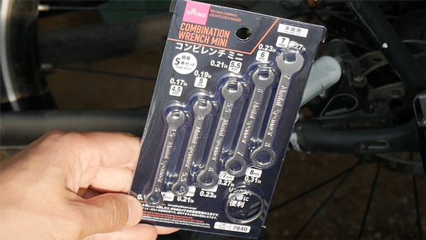 - 油圧ブレーキのブリーダーボルト用レンチ…7mmのメガネかコンビネーションレンチが必要なのですがダイソーに売ってます、薄くて良い、というかダイソーで買えない人はどこで買ったらいいのか?