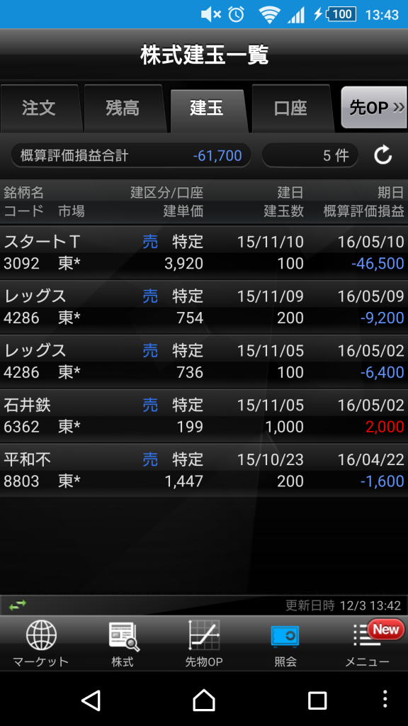 信用倍率見たら1.01だった、やばい逆日歩くるかも。