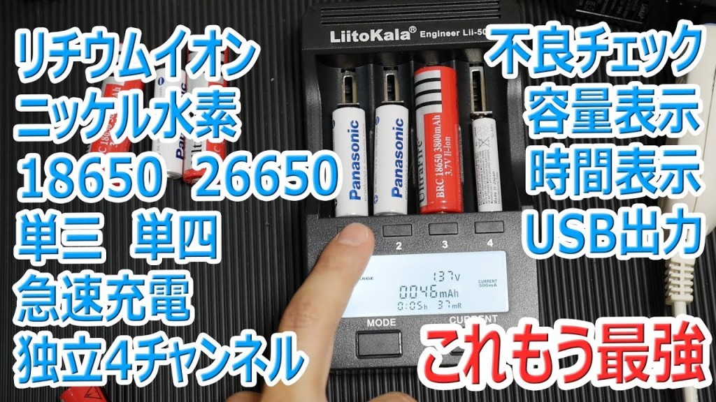 最強です、エネループ等のニッケル水素(Ni-MH)から18650や26650等のリチウムイオン電池は充電できるし色々かゆい所に手の届いた充電器を発見しました。